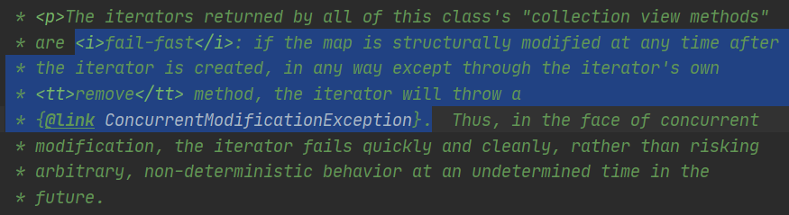 下面我们来看看官方文档在HashMap这个集合中,它是怎么解释fail-fast的(如下图):