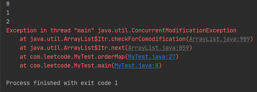 结果分析: 因为当temp==3的时候,执行list.remove()方法,集合的结构被改变了,所以再次遍历迭代器的时候,就会抛出异常。