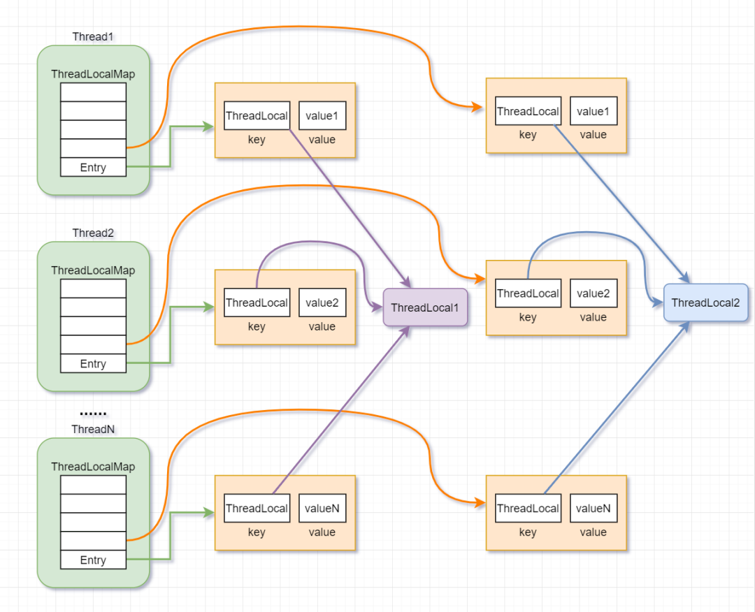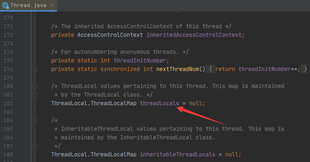 Thread类有一个类型为ThreadLocal.ThreadLocalMap的实例变量threadLocals,即每个线程都有一个属于自己的ThreadLocalMap类型的成员变量: