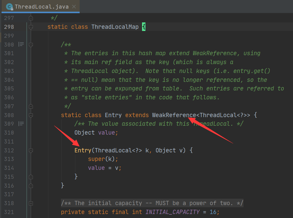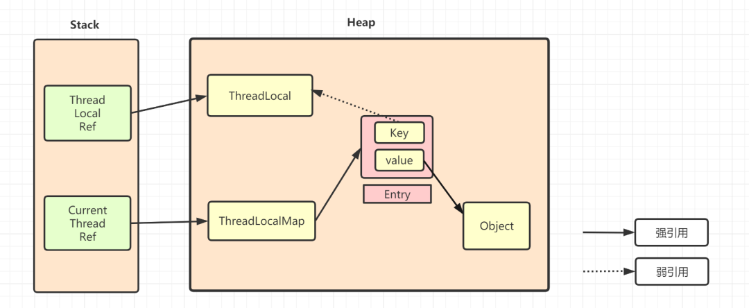 ThreadLocalMap中使用的 key 为 ThreadLocal 的 弱引用: